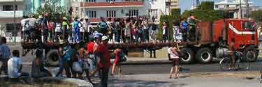 was marching down the street. There were huge truckloads of people